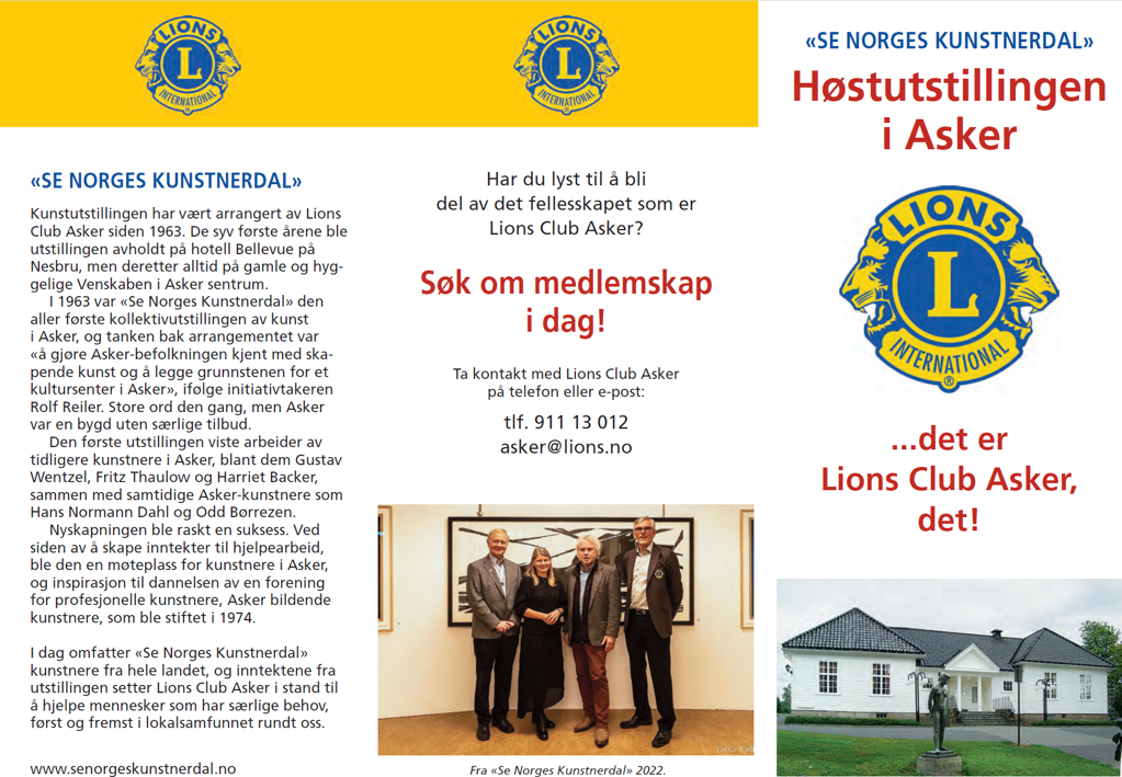Folderen er trykket opp i 2 000 eksemplarer, og er ment som en markedsføring av Lions Club Asker, og å markedsføre Høstutstilling samtidig.